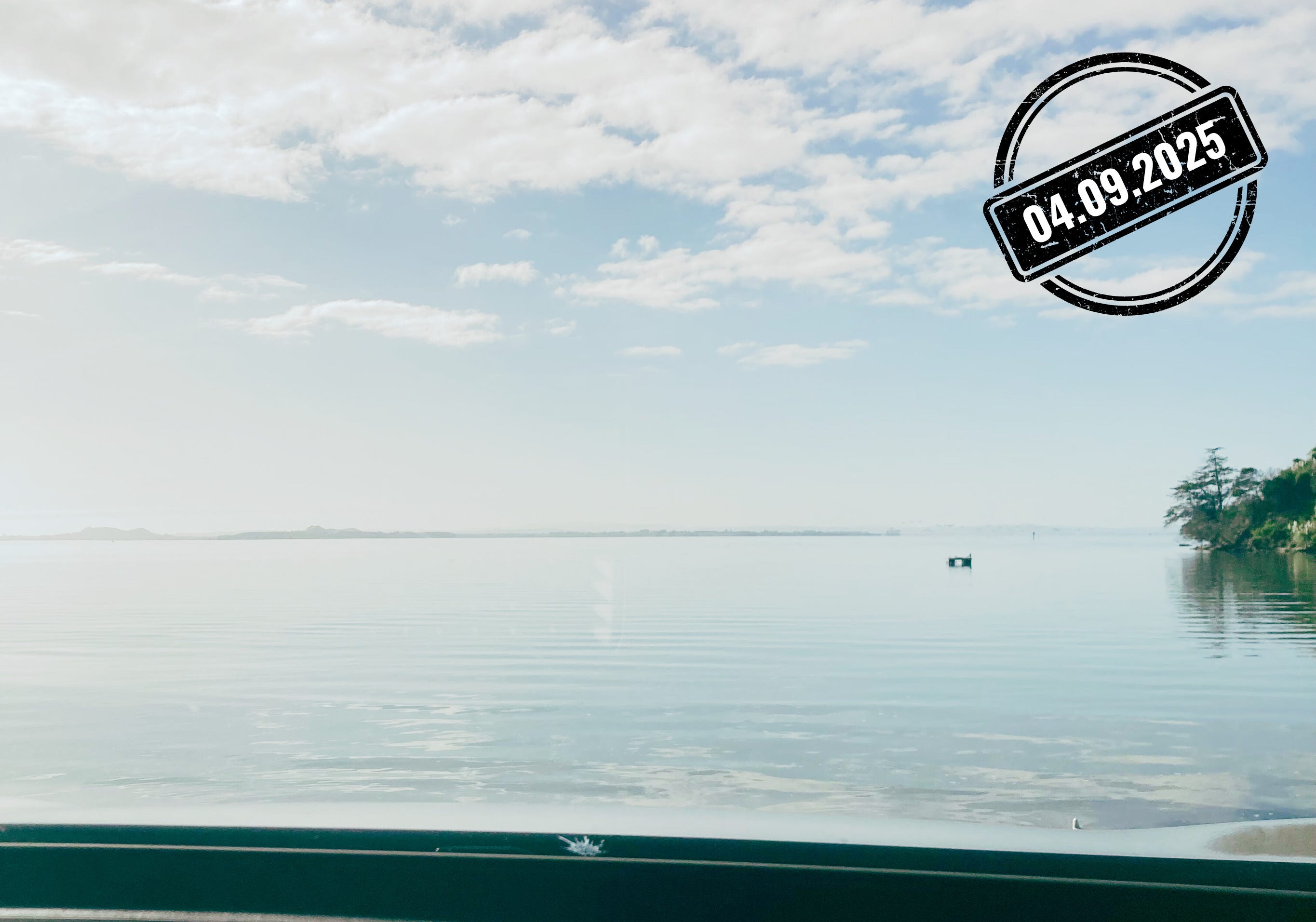 So I took a drive to our local beach. The tide is in, the water is still. I can hear the pleasant chirp of the gulls as they congregate on the beach in front of me.