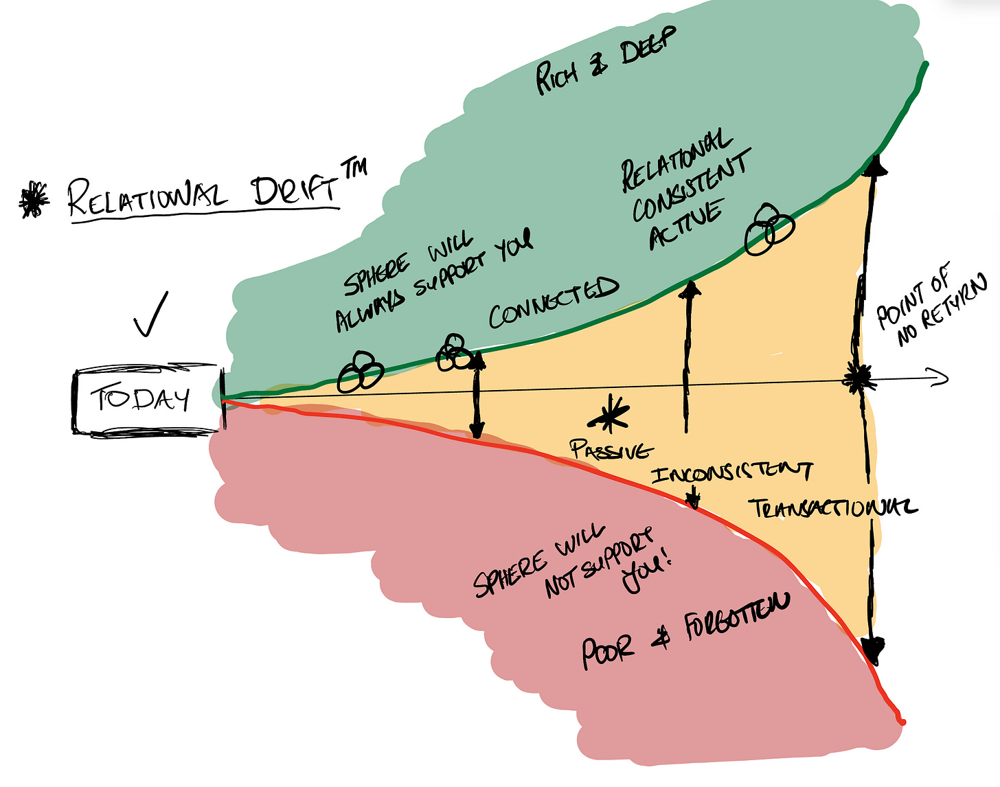 There are a number of reasons why Relational Drift (TM) occurs. We get busy, we get anxious, we take people for granted, we assume that it is their responsibility to maintain contact etc.